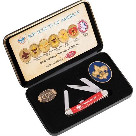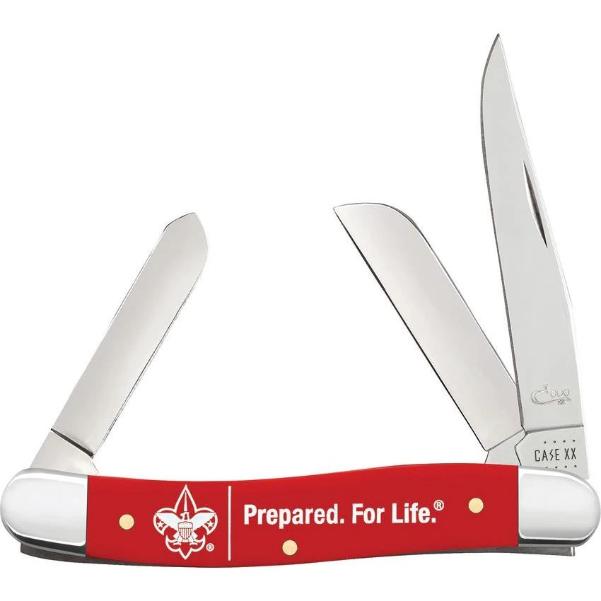 Model – CA18062. BSA Stockman Red. 4318 SS pattern. 3.63 inch (9.22cm) closed. Mirror finish stainless clip, sheepsfoot, and spey blades. Red smooth synthetic handle. Nickel silver bolster(s). BSA Prepared for Life handle embellishment. Gift boxed. Proudly made here in the USA.