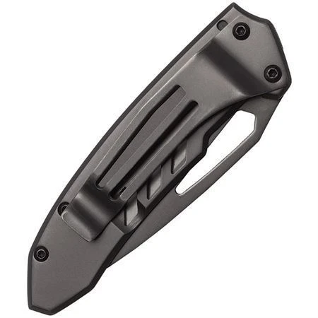 - 2.63″ gray titanium coated stainless drop point blade