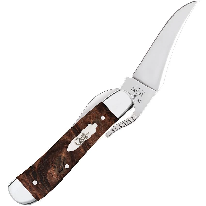 Model/Part Number – CA64068. Case Russlock Maple Burl. 71953L SS pattern. 4.25″ (10.8cm) closed. Mirror finish stainless one-hand opening clip blade. Brown maple burl wood handle. Nickel silver bolster(s). Extended tang. Inlay shield. Boxed. Proudly made here in the USA..