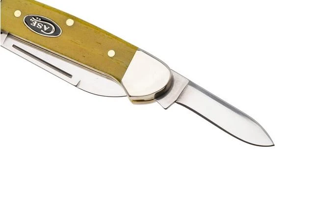 You open the Case Knives with two hands. To make this easier, there’s a nail nick which gives you a little extra grip using your fingernail. This pocket knife is not equipped with a full lock, only with a slipjoint mechanism. This provides some resistance to prevent the knife from snapping shut during normal use. However, if you press on the spine of the blade, the knife will shut.