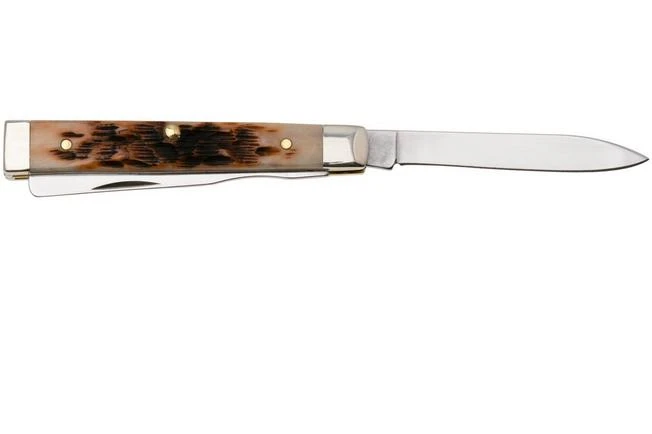 You open the Case Knives with two hands. To make this easier, there’s a nail nick which gives you a little extra grip using your fingernail. This pocket knife is not equipped with a full lock, only with a slipjoint mechanism. This provides some resistance to prevent the knife from snapping shut during normal use. However, if you press on the spine of the blade, the knife will shut.