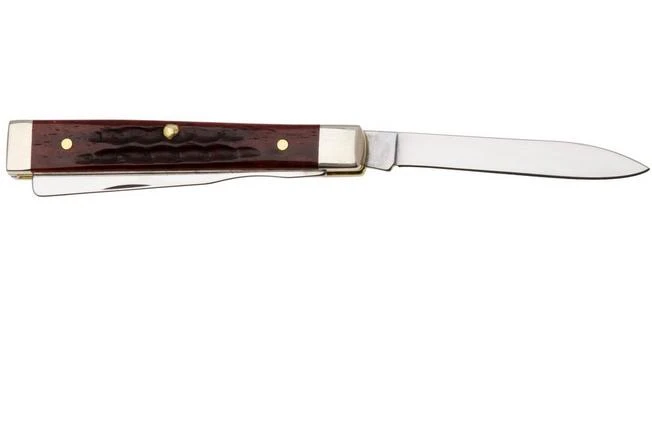 You open the Case Knives with two hands. To make this easier, there’s a nail nick which gives you a little extra grip using your fingernail. This pocket knife is not equipped with a full lock, only with a slipjoint mechanism. This provides some resistance to prevent the knife from snapping shut during normal use. However, if you press on the spine of the blade, the knife will shut.