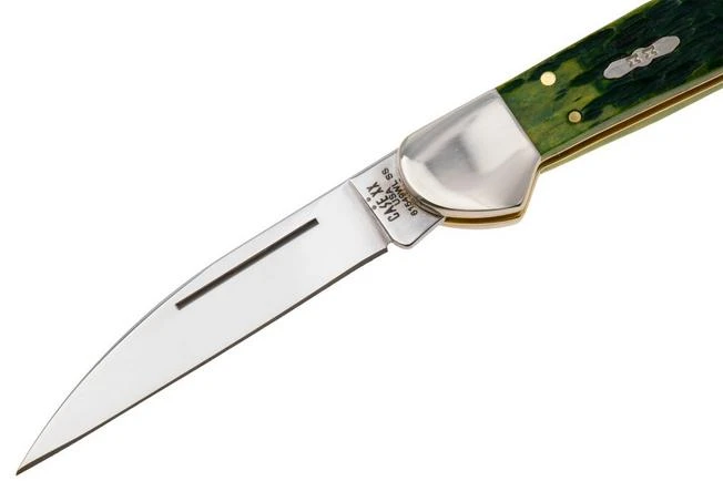 You open the Case Knives with two hands. To make this easier, there’s a nail nick which gives you a little extra grip using your fingernail. A back lock has been chosen for the locking mechanism. On the back of the handle, you press the back spring to unlock the blade.