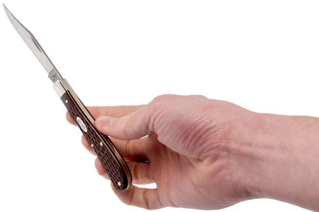 The Case Slimline Trapper is a simple, traditional pocket knife. It has a long and slim clippoint-shaped blade. You open it with two hands and, when opened, the blade is kept in place by the slipjoint lock. The shapes are based on the classic Trapper design.