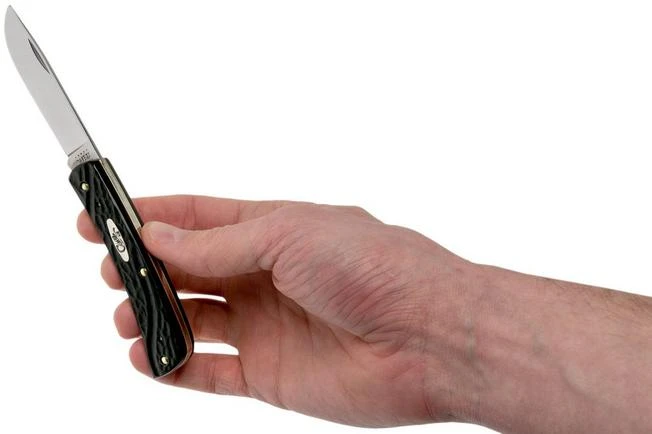 The Case Sod Buster Jr is a traditional pocket knife according to the Sod Buster pattern. A simple pocket knife, designed for the average farmer as a working knife. You open it with two hands and a slipjoint keeps it in place when opened. It doesn’t get any simpler than that.